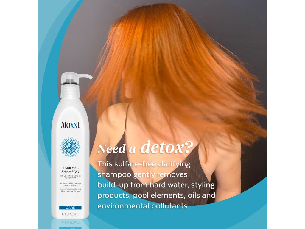 Vyživuje, posiluje a vyrovnává rovnováhu hydratace ve vlasech. Je vhodný pro každodenní použití. Ideální způsob k dokonalé očistě vlasů a snížení napětí na povrchu vlasové pokožky. Šampon zároveň okamžitě odmastí a zhušťuje vlasy, zatímco chrání pokožku hlavy. Šetrně odstraňuje z vlasů usazeniny a zbytky z tvrdé i bazénové vody, olejů, stylingových produktů a znečištěného prostředí. Skvělý krok před barvením vlasů s detoxikační směsí, která čistí, vyjasní a neutralizuje poškození volnými radikály. Obsahuje ColourCare Complex od Aloxxi, jedinečnou směs 10 rostlinných antioxidantů, která chrání barvené vlasy před vyblednutím tím, že pomáhá blokovat škodlivé UV paprsky. Antiseptické vlastnosti detoxikačního šamponu poskytují vlasům hlubokou očistu.